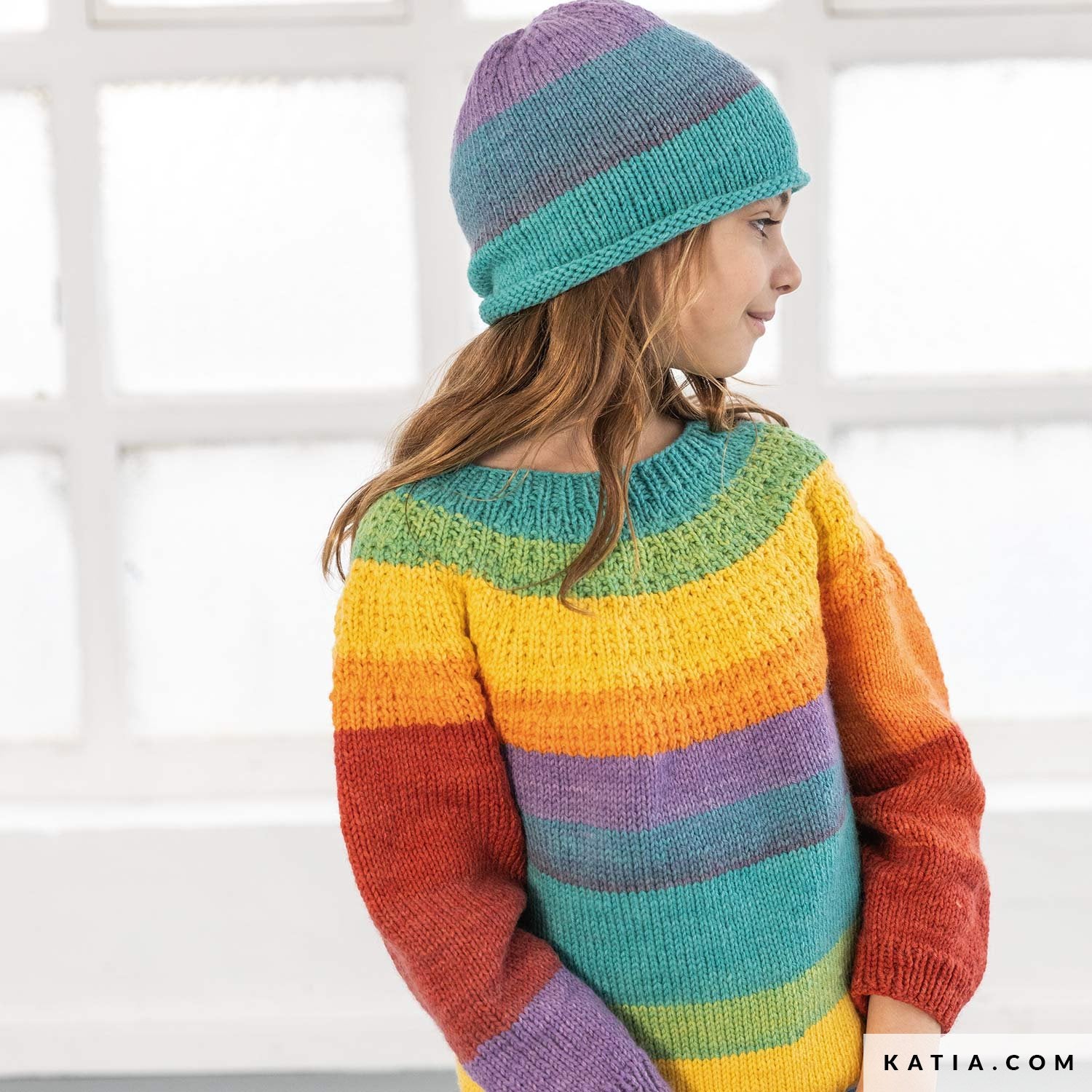 Deze kleurrijke kindertrui uit de Katia Paint Lover serie is een vrolijk project voor wie houdt van duidelijke patronen en een speels kleurverloop. De brede banen ontstaan vanzelf uit het garen waardoor je zonder moeite een mooi effect krijgt. De trui wordt tot aan de mouwinzetten in het rond gebreid. Dat houdt het overzichtelijk en zorgt voor een prettig doorbrei-ritme.